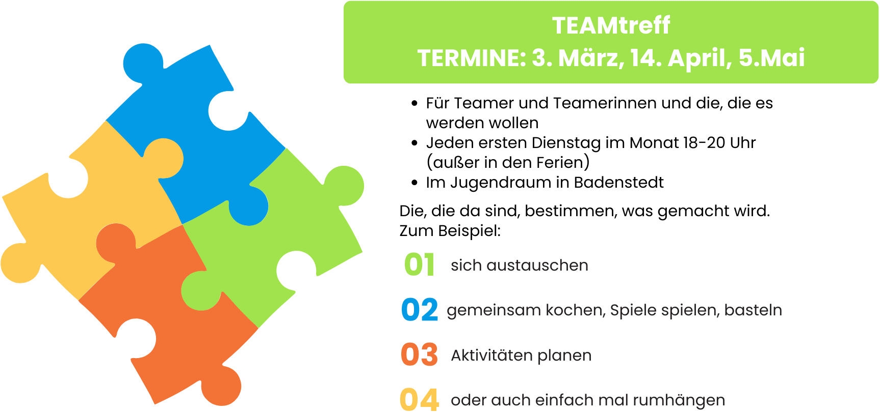Wir freuen uns schon auf die nächsten Kinderferientage in den Osterferien vom 24. bis 26. März 2026, mit einem engagierten Team und Kindern zwischen 6 und 11 Jahren.