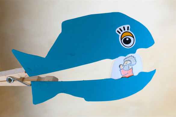 Im Kindergottesdienst haben wir auch etwas von Jona gehört und seinem Auftrag nach Ninive zu gehen. Gott hilft uns in schwierigen Situationen. Das haben wir beim Vorspiel der Geschichte erfahren. Der Fisch mit Jona im Maul erinnert uns an dieses Versprechen.