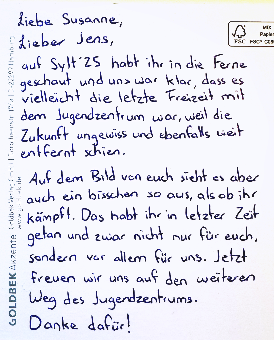 Wir grüßen euch/sie ganz herzlich, ein letztes Mal im Gemeindebrief, aus dem Jugendzentrum Salem.